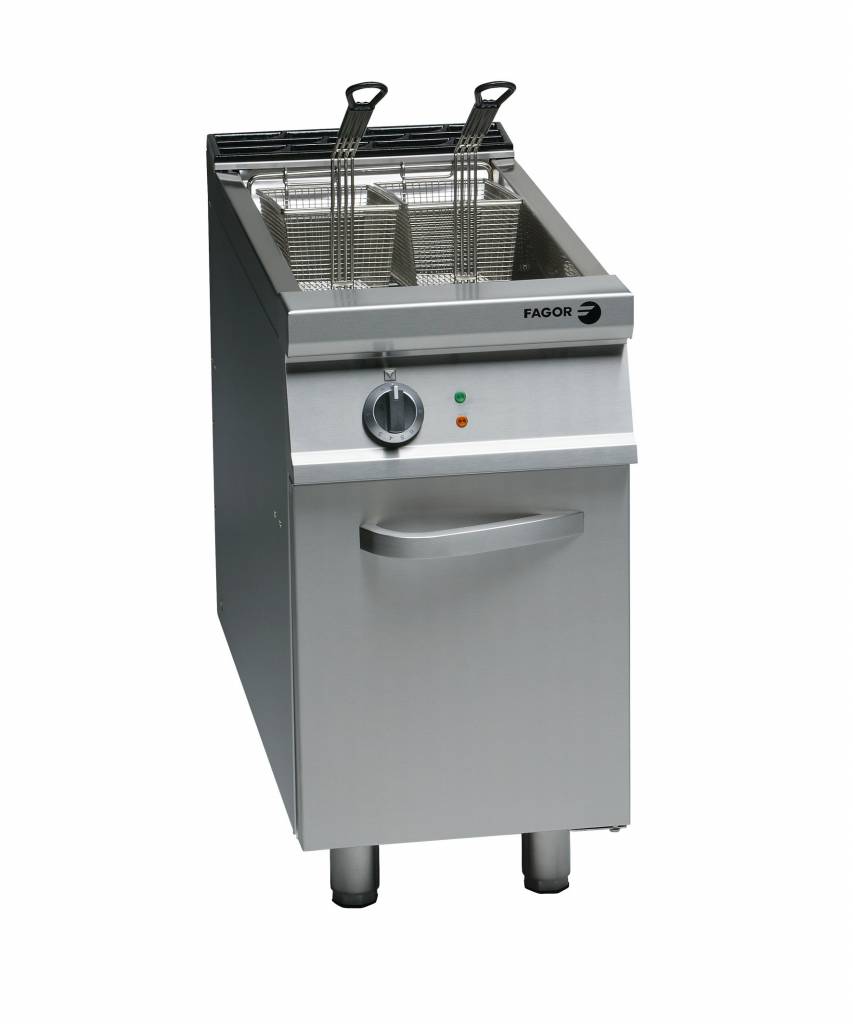 The fryers in the 900 Series have built-in thermostatic temperature control for temperatures ranging from 60 ºC to 195 ºC. They also include a vat drainage tap to make it easier to clean the machine. Each vat has 2 small baskets (P), measuring 315 x 160 x 120 mm, or one large basket (G), measuring 315 x 330 x 120 mm, to suit the needs of each customer and each situation.