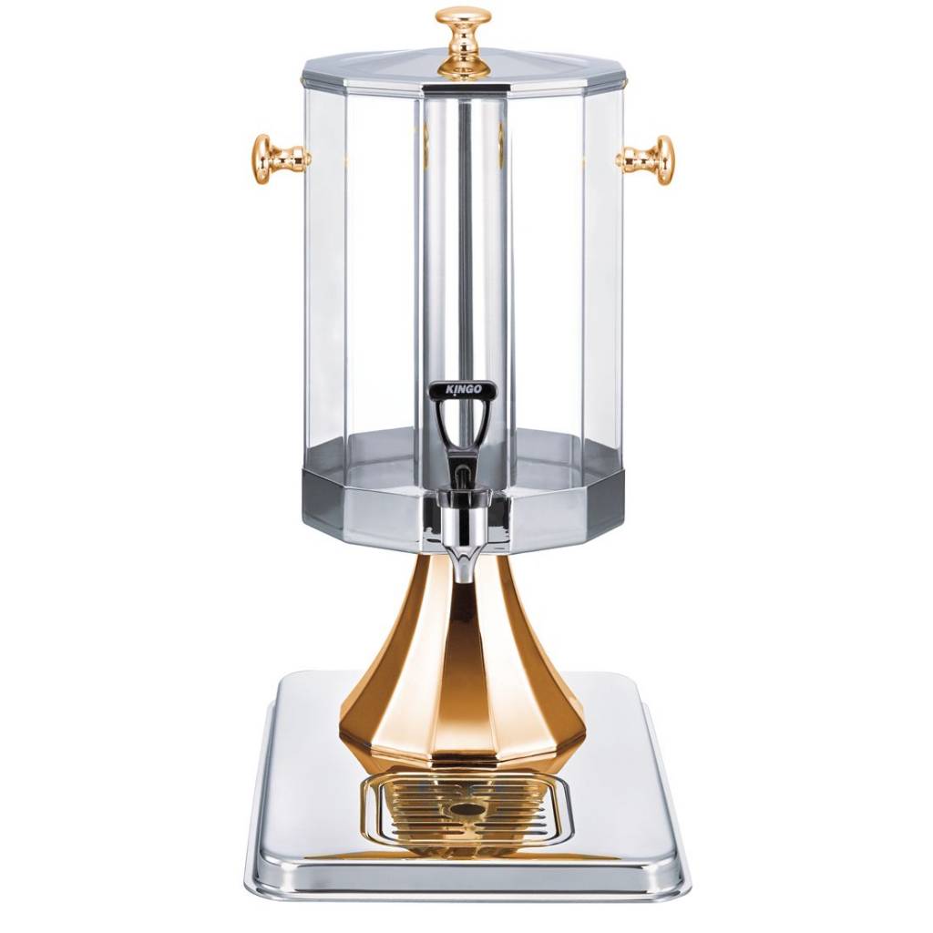 Kingo Juice Dispenser with unique tripping trough and conjoint design, keep the juice fresh and lasting longer. Drainage has designed at the back of the device, easy to drain the ice cooling water out, easy to use and simple to operate.