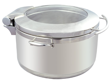 - Round induction chafer with glass lid